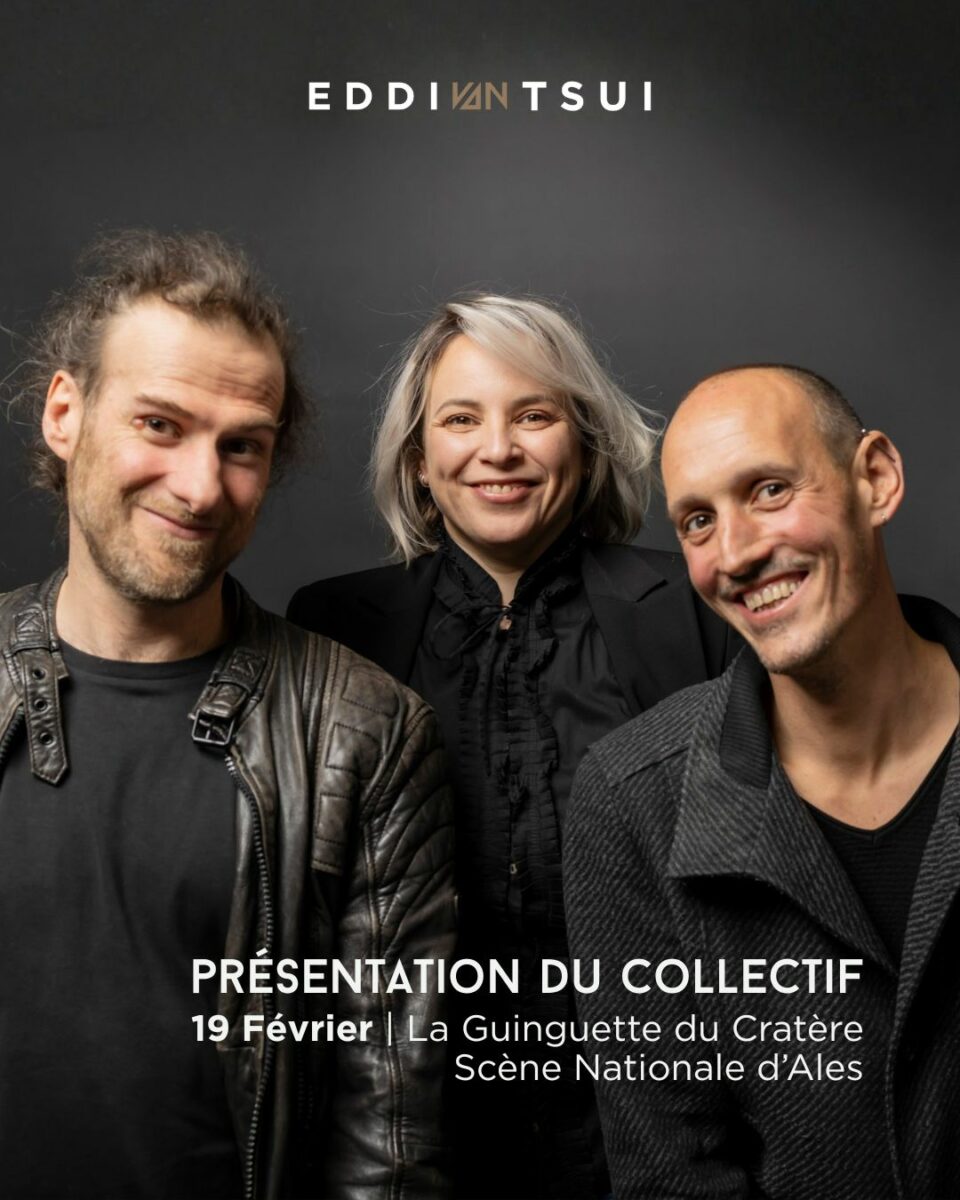 Eddi van Tsui est basé entre Luxembourg et… Ners ! Pluridisciplinaire, le collectif est né sous l’impulsion de trois artistes : Sandy Flinto, metteur en scène et plasticienne, Pierrick Grobéty, concepteur son et musicien, et Daniel Marinangeli, auteur et dramaturge. Ensemble, ils revendiquent la pluridisciplinarité́ de leur travail qui s’inscrit dans le domaine de la création scénique et des arts plastiques.